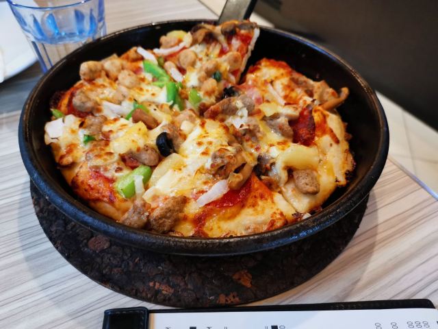 出差一个人有时候很纠结出去吃什么,懒得时候点个披萨还是不错的选择,可以赖在酒店等送货上门,边看电视边吃披萨,口味做了改良,蛮适合中国客人的重口味