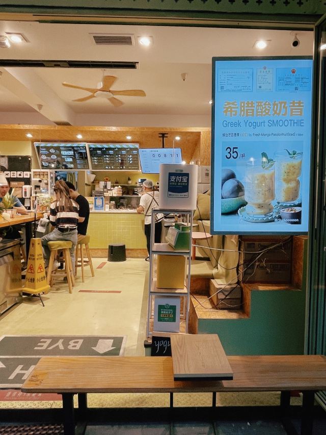 开在洋气的永康路上,咖啡+甜品酸奶,明亮开放的店堂,厚椰冰拿铁的口味相当不错,淡淡的甜味,完全不用再加糖油调味,整体很舒适