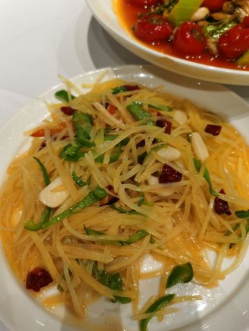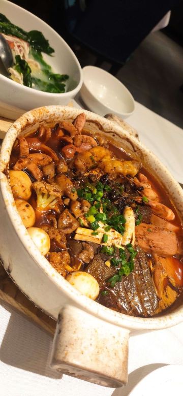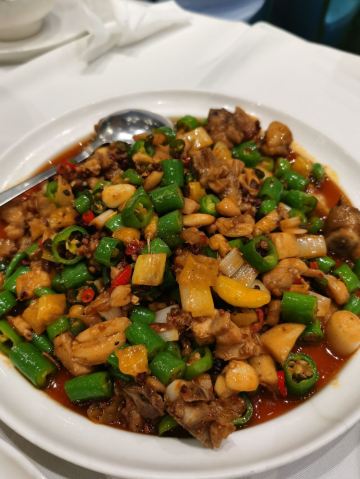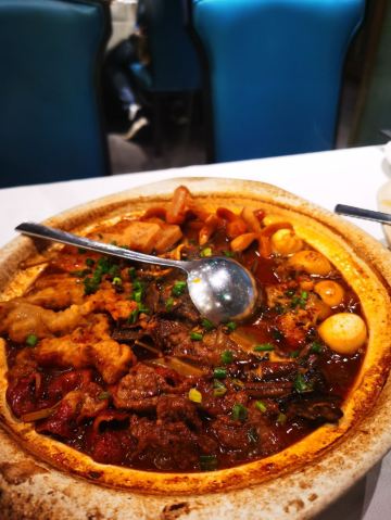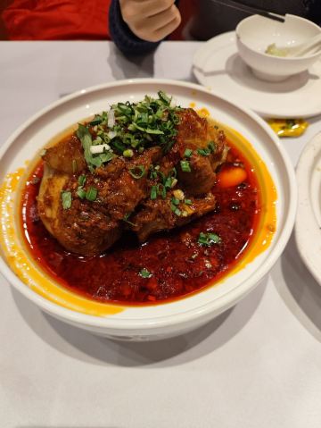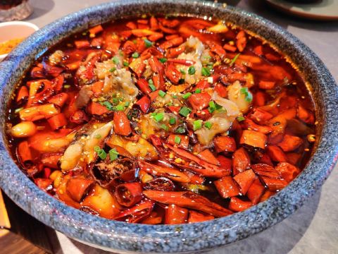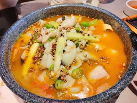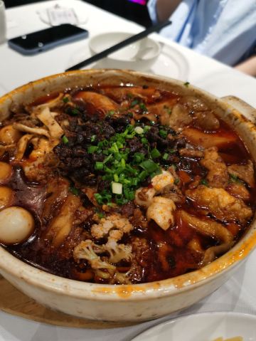 夏天了就想吃点麻辣开胃的!两个人黑心的点了3人套餐,5个菜都是最喜欢的。 肥肠麻婆豆腐,肥肠不多,要了微辣,超级下饭吃! 东坡大麻鱼,就是花椒鱼,鱼肉很嫩,配菜好多呀,魔芋丝 莴笋 藕… 馋嘴牛蛙,牛蛙好大块,腿肉吃起来好爽,味道超赞,配菜和大麻鱼差不多,有藕 莴笋等… 翘脚牛肉,牛肉很大片,吃了麻辣吃点这个菜,解辣。 甜皮鸭,这个好吃的,甜皮,但是鸭肉有入味。