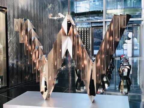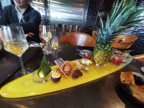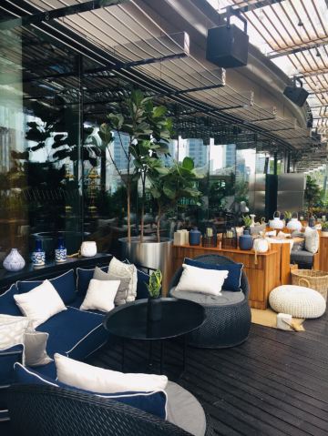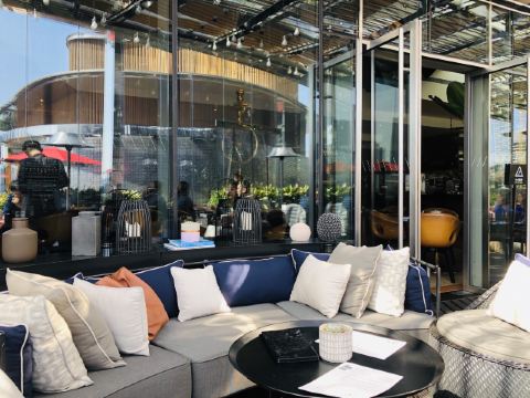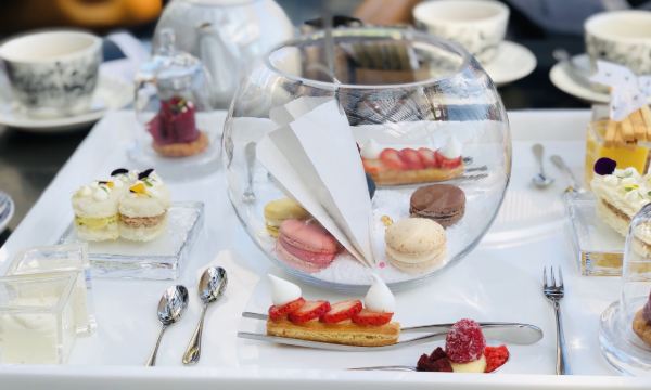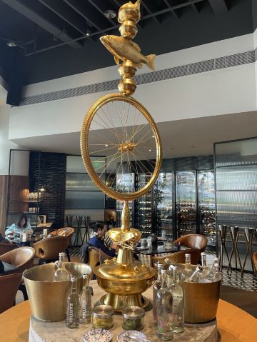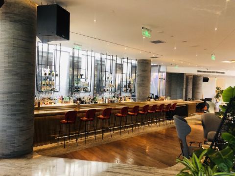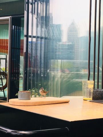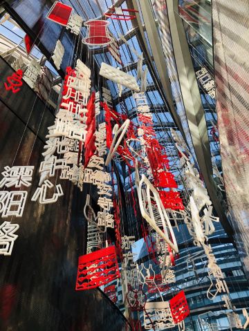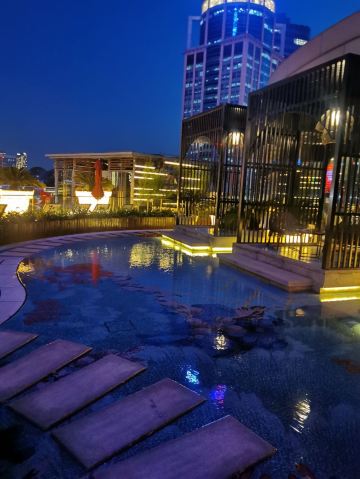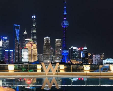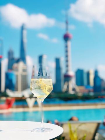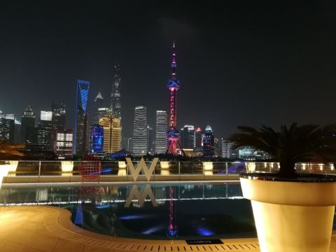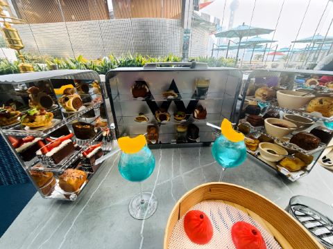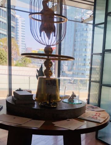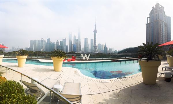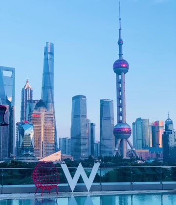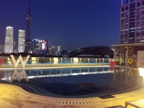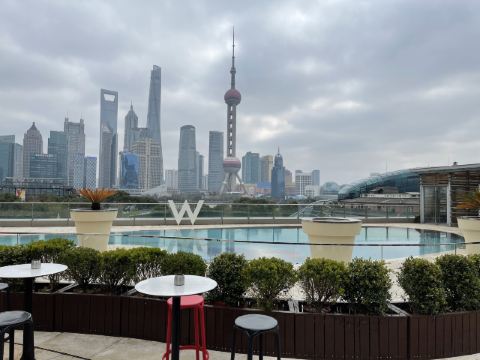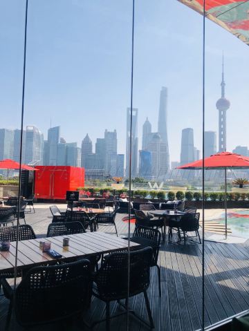 The Kitchen Table网红餐厅,风景极佳。室内餐桌照出去,近景露天红色凉棚,中景W标志的无边泳池,远景陆家嘴高楼群和东方明珠电视塔尽收眼底。下午茶性价比很高,茶壶器皿精致讲究,马卡龙软硬兼备糖度适中,蝴蝶酥酥脆柔韧,味道正宗。W酒店门廊藻井装潢一如既往的个性十足,很有特色。