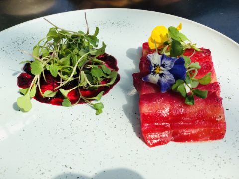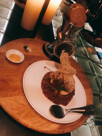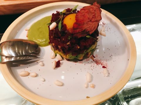 honeywanzi收藏已久的北外滩西餐厅拔草成功! 【环境】环境自然不用说了,位于W酒店的W层,户外就是非常出名的网红景点,上海的浦江夜景真的好美。标帜餐厅则是一间纽约风格的餐酒馆,整个装修风格很精致,却同时又给人一种轻松的用餐氛围。 【口味】 「西班牙冷切肉盘」伊比利亚火腿配曼切格芝士,跟我在西班牙吃到的味道一模一样。 「餐前面包」是我在西餐厅吃到的最好吃的面包了,全麦的,外皮脆,内里又香又有嚼劲,大爱。 「甜菜头布拉塔芝士」新鲜布拉塔芝士配上香料慢煮的甜菜头,烤制的黄金甜菜头,甜菜头泥和甜菜头粉,第一次尝试,惊喜到了味蕾。 「美味甜菜头」全素食的菜式,却做出了牛肉塔塔的色彩,牛油果和甜菜头配上芒果泥做的“蛋黄”,层层美味等着我们去发现。 「手切生牛肉鞳鞑」用的是安格斯牛里脊手工切制,尽可能地保留了牛肉的多汁美味,配上了水瓜柳和腌制蒜片,增加了甘甜的回味。 「澳洲9级和牛厚切西冷」由Josper全碳烤炉烤制,9级是我至今吃到的最高等级了,烤制的外皮有点脆,肉质鲜嫩,回味无穷。 「香煎银鳕鱼」特制银鳕鱼旁的黄油面包可以沾着椰子味汤汁,入味很香。银鳕鱼很新鲜。 【服务】服务员会及时地添加苏打水和酒,餐盘也是及时地更换新的。 一定会再次光顾的西餐厅!