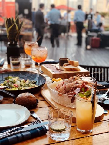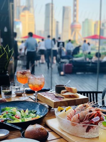 D了个Y网红酒店的网红餐厅 有网红露台上的网红景观 当然还有网红大logo 国内外也算是去到过一些W 讲真上海W算是真的不错 单说这个餐厅背景 陆家嘴当红视角已经秒杀其他 装修风格也是喜欢的类型 精致 温馨 很有辨识度 当然终究撇不开的还是这个大露台 西餐厅供给量这么大的还真不多见 显然这家就是 一个主食基本就给对付了 |肋眼牛排^400g 真的是好大一盘 蘸酱配2种 6~7分熟的样子 中规中矩 就光记着盘儿大了 |蜜汁羊排^三份儿装 我勒个去 一份清盘结束的意思 这量真的可以 羊排一般 但是酱汁很有特色 记忆点挺深 |龙虾浓汤^好评 秀色可餐 闻香识味 尤其是这个时间点的户外 一份暖暖的龙虾汤 真的太对胃 Tips 露台景观虽好 十月的秋风也是凉凉的很 还是建议坐室内或是在室外加一件外套 如果实在没有准备 餐厅也有提供毛毯