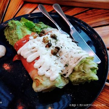 餐厅设计感十足,满满美式风格,除了室内用餐,设有露台用餐区。这里的总厨拥有20余年的行业经验,出品质量很高。首推牛排,肉质鲜嫩,烹饪的恰到好处,装盘也很独特。