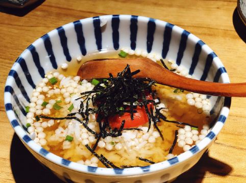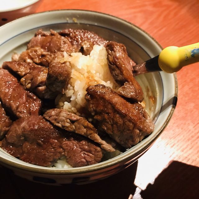 Maki House过年时候出不了上海,小年夜在和平饭店住了一晚,晚饭到宏伊广场觅食,maki house小年夜是最后一天运营,大年夜开始他们也放假休息了。 最后一天生意还是很好,基本上上座率100%。我们正好等到了角落的位置,选了他们家的几个招牌菜。 「牛排饭」果然是他们的招牌菜,一大碗牛排盖饭,牛排很嫩,汁水很多。 「鰤鱼饭」满足了想吃刺身的念想,鱼肉伴着酱汁,唐心蛋伴着吃特别下饭。 「草鞋饼」看着的确是够油,不过味道是真的香,搭配着洋葱的牛肉饼,配上酸酸甜甜的番茄酱,吃2口差不多就饱了。 「荞麦面」热的荞麦面吃着特别舒服,小朋友吃面🍜一口接一口。 [薄荷]环境:店面不算特别大,不过秩序井然,整体比较昏暗,蛮适合喜欢情调的人去。 总的来说性价比很高,怪不得常年上榜热门餐厅。