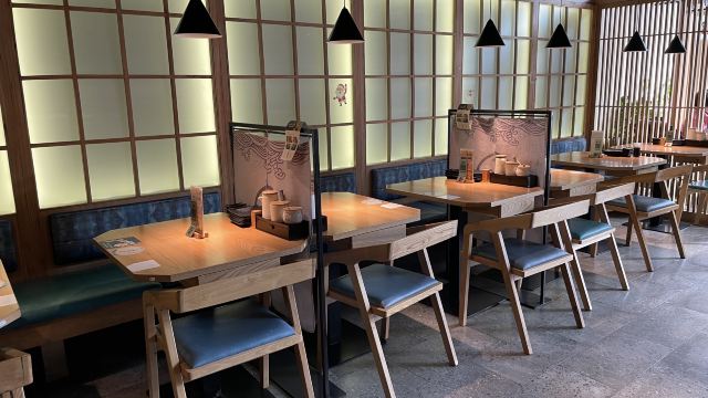 Ruby.Jin一样是凯德的,不过凯德星贸和凯德来福士还是不一样啊!商场部分的店铺比较少。找了一家日料店吃午饭。有吧台和卡座,窗边的景观座也很棒。不过小朋友没坐过吧台,所以就坐在了一个金鱼缸前面,一边吃饭一边看鱼。厨师在吧台后面忙,但是看不到操作。寿司会直接递过来,也是真方便。 点餐可以扫码,加入会员充值都有好礼相送。充值送了一份炙烤三文鱼寿司。我想说,果然还是生的好吃。他们家的寿司米粒握得特别紧,赞一个,酱油比较普通了。 小朋友点了一份温泉蛋牛肉饭。这个小朋友大概因为天天早上规定必须吃一个蛋,所以其他时候能不吃就不吃,但是这份饭,她说很好吃,后来她又带爸爸去吃了一次。 服务也还不错。