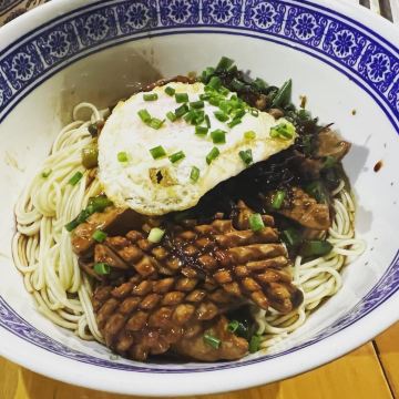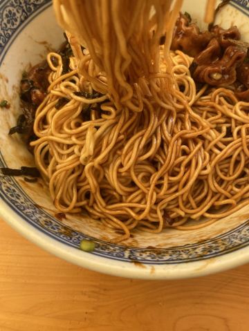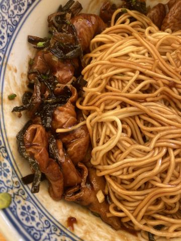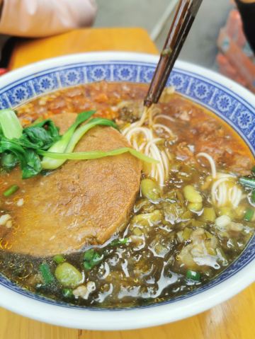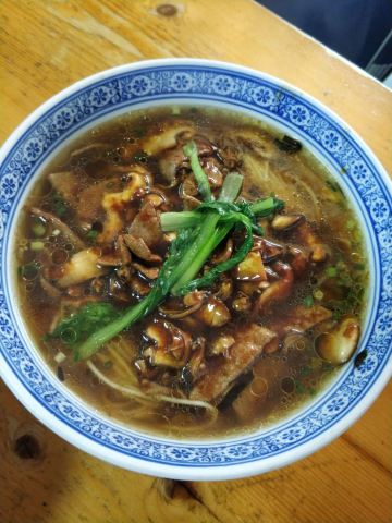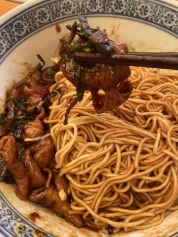 小雪Snow酱沪西老弄堂面馆 近期吃过最好吃的面馆 可以给到半 环境 小店不小,有两层楼开在大厦1楼 原来的老店在定西路附近,今年还进可美食必吃榜,不知道是不是真的有两把刷子 工作日中午前往,人流不减,需要拼桌 服务 点单是用老式手写计算机的模式,点单小哥哥不知道是不是老板,人超有趣的,这样的服务让人在用餐前就好感倍增呢 菜品 一碗汤面,可免费续面,另加: 猪肝蛤蜊+辣肉+虎皮蛋+炸猪排 面条好评,软硬适宜,选择汤面明智,已经充分吸收了汤汁,每一口都很入味。辣肉由辣肉丁和辣肉糜组成,微辣带甜,都很不错。猪肝滑嫩香浓,混合着蛤蜊肉,起到了提鲜作用 小雪探店小尾巴 话不多说,这家店的回头客做定了!