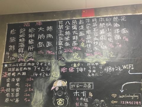 辣肉面加雪菜和毛豆,鲍蛤蛏面,蛤蜊猪肝面,洋山芋榨菜肉丝,葱油拌面,炸猪排,酱爆猪肝,素鸡,素浇,海鲜面,猪肝蛤蜊汤面,大排面,咸菜肉丝,葱烤大排,八宝辣酱浇头,维他奶,大肠面,虎皮蛋,腰花汤面,辣酱油,茄盒,辣肉面