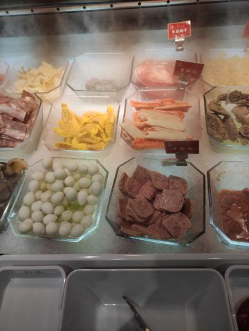 就是涮菜啦。食材还挺新鲜的,点了鱼虾和牛肉,再配点蔬菜加个锅底就是一锅独特的菜,但是锅底我不喜欢,最好有清汤的。冰粉和茶水自助。