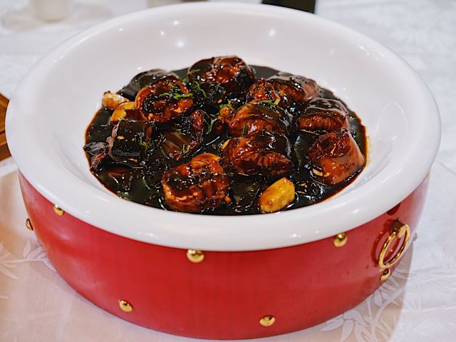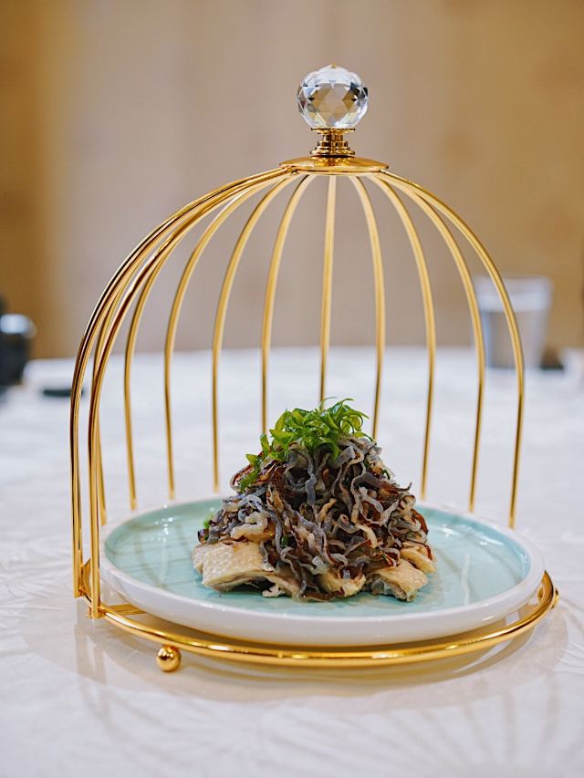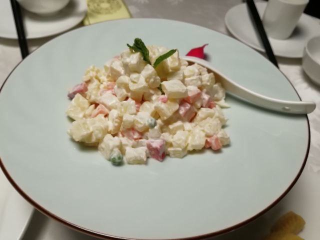 清蒸紫芋,白切鸡,碳烧法式羊排,土鸡汤,炒饭,翡翠虾球,清蒸芋头,至尊红烧肉,小汤圆红豆汤,金蛋拌海蜇,青瓜炒澳带,鲍鱼烩猪手,熏鱼,茄子鳝丝,肉饼蒸梭子蟹,红烧河鳗,清蒸白水鱼,樱桃目鱼仔,鸡头米虾仁,元宝虾,双味虾