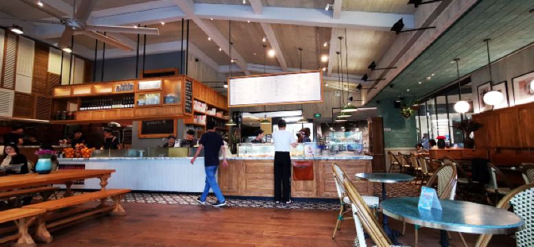 LOKAL唉,写点评怎么有这么多人马马虎虎,连分店名字也选错了,Ctrip的审核也粗糙的很,选错分店名字的也打上了精华章。其实一年多前就看到这家店了,刚开张时经过进去转了一下,买了几个面包,回家试吃后觉得一般般,湖滨道似乎没什么做得好的面包店。这次旧地重来,正好是午餐时刻,进去随便吃一点。和WAGAS同一个老板,以简餐为主,也有面包、酒,比WAGAS好像品种多一些,都是老外比较喜欢的风格,中午生意很好,我们结束时快要满座了。室外也有空间,今年到现在还没出梅,气温适宜可以外面坐坐。意大利面做得很不错,咖啡也可以,价格略贵一些但还可以接受,偶然来一次尝尝鲜。室内装饰不是非常上照,实用性占据更重要地位吧