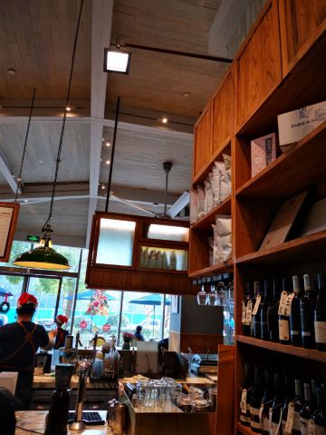泡泡龙他爸唉,写点评怎么有这么多人马马虎虎,连分店名字也选错了,Ctrip的审核也粗糙的很,选错分店名字的也打上了精华章。其实一年多前就看到这家店了,刚开张时经过进去转了一下,买了几个面包,回家试吃后觉得一般般,湖滨道似乎没什么做得好的面包店。这次旧地重来,正好是午餐时刻,进去随便吃一点。和WAGAS同一个老板,以简餐为主,也有面包、酒,比WAGAS好像品种多一些,都是老外比较喜欢的风格,中午生意很好,我们结束时快要满座了。室外也有空间,今年到现在还没出梅,气温适宜可以外面坐坐。意大利面做得很不错,咖啡也可以,价格略贵一些但还可以接受,偶然来一次尝尝鲜。室内装饰不是非常上照,实用性占据更重要地位吧