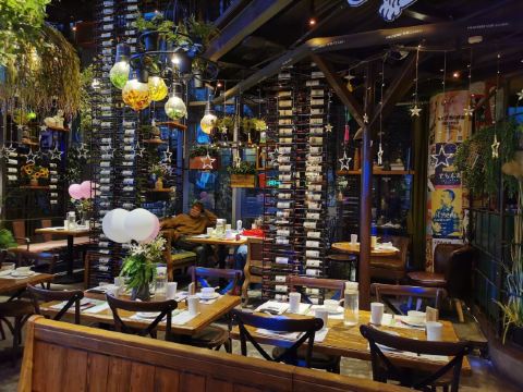 上海现在有好几家胡桃里了,这家位于金桥区域的胡桃里是开的比较早的,在商务楼下面,我也是因为工作原因才去这家店的,里面挺适合拍照的,单单拍照可能就要拍上15分钟,晚上有驻场歌手来唱歌,烤鸡是这家店的特色菜,胡桃里菜品的味道不错,就是等的时间太长。