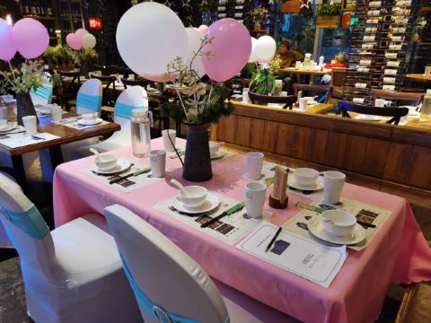 圣诞和公司同事聚餐,年轻人喜欢新奇的地方,我就随他们来瞧瞧。吃的东西做的中规中矩,价格合适,摆盘适合拍照,效果不错。人挺多的,过年过节挺有气氛。现场有演出,还有抽奖,最后的甜品摆盘非常吸引,大家都玩的超级开心。