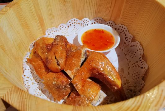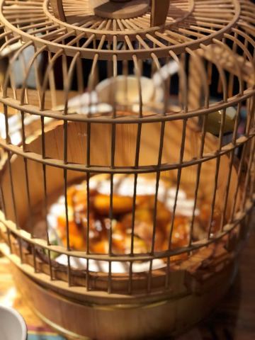 周末约上闺蜜们一起狂欢的最佳选择 气氛棒棒哒 氛围和环境都还不错。晚饭时间有歌手唱歌,音响的音量刚刚好,不会让人感觉很吵。烤鸡很实在呀满满一大盆,鸟笼造型新颖别致 其他菜品都挺一般的