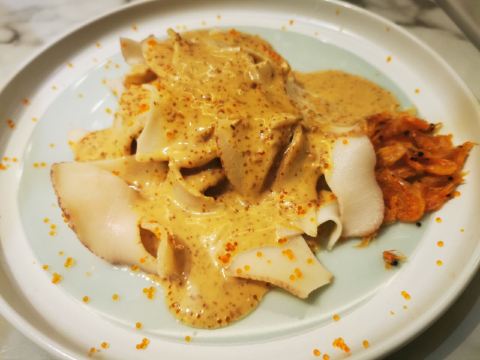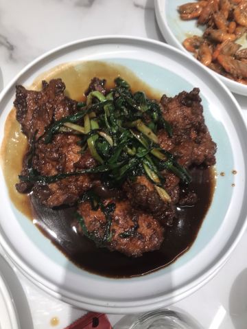蘭心餐厅 连锁店用餐过几次 菜式还算比较精致 人不算多 用餐环境倒也可以 空调开了很足 餐具干净很有特色 老虎尾 完全是原味 几乎没有任何调味 稍带一丝腥味 肉紧致 咀嚼时可以感受到是条有力的尾巴 山楂水果 开胃前菜 爽口 酱鸭 酱很浓 比较一般般 蛏子 肉肥鲜嫩 原材料不错 清蒸笋壳鱼 中规中矩吧 不会出错的菜 蟹黄炒蛋 虽是简单的菜 但是口味还不错 让人停不下来 油爆虾 小个头虾 一般般吧 洋葱生鲷鱼 刺身的口感 红烧肉 外面做得好的店比较多 这家就只能归为普通了 蟹粉豆腐 差了前面的蟹黄炒蛋太远 腌笃鲜 量还可以 不过不够鲜偏淡 油墩子炸得不错 冷饮奶味重不甜 总体还是不错的一家 性价比不错
