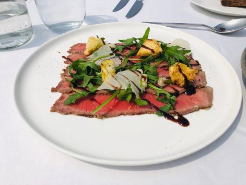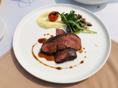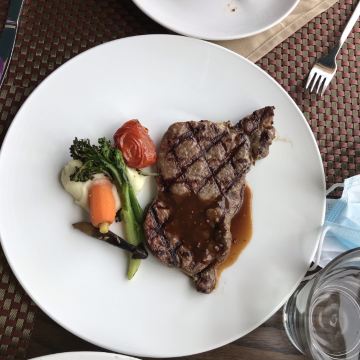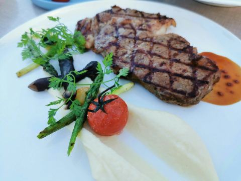 吾是土豆泥参加的第九年餐厅周,五一的时候不允许去外省,只能靠美食解忧了。 位置📌: 坐落在外马路上,以前的外马路记得是买考卷的地方,如今变成了时尚老码头。他们家门口可以代泊车🅿️,20元一次。 [薄荷]环境: 来得早不如来得巧,给了我们一家3口靠窗位置,5🈷️中午楼顶露台已经不能坐在外面了,不然就是炙烤我们了。只有晚上露台餐厅才会开放,稍许遗憾等下次再来弥补了。 「餐前面包」 比较经典的软包,送来时还是热乎乎的。搭配店家的黄油🧈,可以稍微垫垫饥。 「嫩煎和牛牛舌」 牛舌超级嫩,炖的酥烂,小朋友嚼起来非常的方便。不仅摆盘颜值高,口味也是相当好。 「法国黑鳕鱼饼」 比较大的一块,口感不油腻,搭配的酱汁很开胃。 「碳扒和牛西冷牛排」 5分熟的西冷,烤的恰到好处,除了牛排🥩本身,搭配的土豆泥味道也是一级棒。 「香煎深海虎节大虾」 3个黑虎虾,搭配小麦饭。黑虎虾的虾头保留着虾🦐的汁水,虾仁肉质Q弹。 [服务铃]服务: 虽然餐厅周的时候餐厅爆满,不过仍旧安排的井然有序,看了看每桌的客人都照顾到了,服务很不错。 下次来吃吃他们家招牌的惠灵顿牛排,感受下露台的景观位。