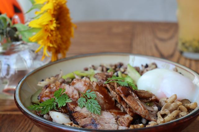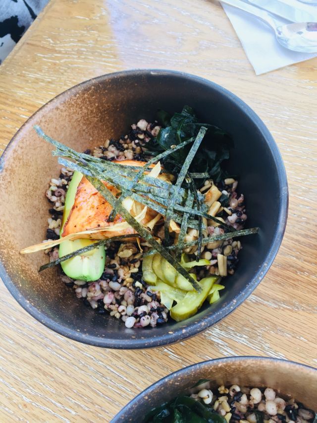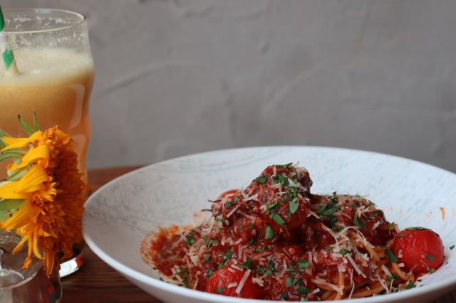 Ruby.Jin万禾都市农场,有小动物,适合带小朋友去就餐,虽然小动物也就只能看看而已。不过,小朋友对于餐厅环境很满意,一进入就说好大啊!至于吃什么,反正她就想吃意大利面,连菜单都不用看。我想想我们就两个人,所以最后忍痛把小食和甜品都去掉了,只点了一份意大利面和一份杂粮饭。把宽面换成了细面又让不要放辣。 意大利面端上来的时候,浓浓的牛肉味,我不喜欢闻,但是,煮得入口即烂的牛肉非常好吃,小朋友表示很满意。肉酱也特别多,小朋友把面捞掉之后留下好多酱。 我点了一份炭烤M5和牛杂粮饭。味道比较清淡,但是比起牛脸肉番茄意式宽面那浓郁的味道来说,真的是更喜欢这份杂粮饭,因为是杂粮,所以牙口不好的人吃起来大概会有点累,我嚼的都有点嘴巴酸,但是,温泉蛋、芦笋、最重要的是M5和牛,真的是超级好吃的!至少是非常和我个人的口味。 另外点了一杯饮料:柠檬的一天,其实是百香果加凤梨,酸酸的很好喝。