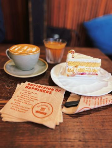 根正苗红的小阿轩📮店名:老麦咖啡馆(武康路店) 📍地址:上海市武康路439号武康大楼底楼-1 ☕️老麦是武康大楼底的一家老牌网红咖啡店。 🎞本身这个武康大楼就是上海旅游热门打卡地标,更别说老麦这个本身就自带流量的装潢了。门口红色铁皮咖啡桶和全木质的门脸吸引了源源不断的游客摆拍。 ☕️由于巨大的客流,屋内的桌椅摆放也有些局促。一楼的一处角落设有“老麦杂货铺”,放置着各地淘来的老物件。 🎞二楼是三角形的阁楼。窗边位全部是高脚凳,设计成了吧台景观区。无论是坐在这喝杯咖啡休憩观看楼下熙熙攘攘的人群,亦或是拿着平板电脑办公看剧,这都是极为愉悦的。 ☕️我点了老麦拿铁,里面加了姜汁,回味微辛。出品没啥出错点但也不会有惊艳感。本身的地理位置导致老麦的咖啡定价比其他精品咖啡店翻了一倍。 🎞在老麦简单打了个卡,阴差阳错感受了一下“网红武康路”。感慨出一句话:你坐在窗前看风景,殊不知自己也成为别人相机中的风景。 ☕️我这次上海之行又一次完全奔着追星,所以并未提前做好咖啡探店的功课,老麦是我临时找的一家店。老粉都知道我每次去上海探的咖啡店基本都是复古风,老麦也不例外。 🎞如果你像我一样钟情于复古,那么路过武康路时不妨来老麦歇歇脚吧~