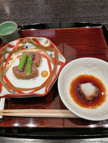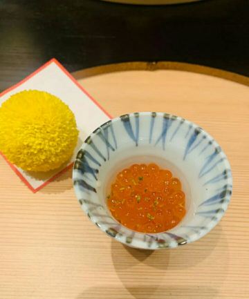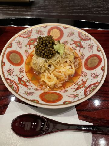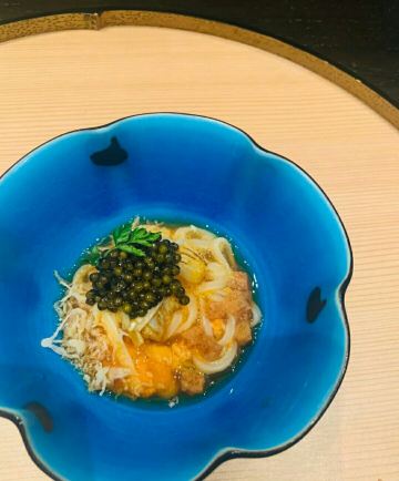 里的上菜顺序也和传统怀石很不一样 第一道前菜是海鳗 第二道是鱼籽海胆面条 这道很美味啊 大家一致说好吃 接下来的每一道菜无功无过 没有惊喜感 但也不难吃 影响深刻的是 八寸 说是日本传统的一道料理 里面是几种小食 甜香咸鲜都尝到了 很不错 寿司的话只有一贯 师傅手艺很好 除了米饭温度偏低 其他都完美 要是能配上专门的寿司擦手巾就更好了 每一道菜的摆盘得很精美 随便拍拍就很好看了 和牛是做成了寿喜锅 个人感觉偏老了 而且不是特别喜爱偏甜的口味 感觉如果有选择烤制的会更好 主食的话是三文鱼饭和樱花虾饭 很大两锅分好后会贴心的