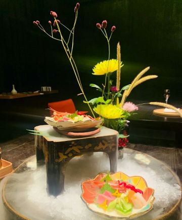 餐厅由建筑家隈研吾先生亲自设计,丰富的线条打造出多维度的视觉感官,店内漆器价值不菲,彰显主人不俗的品味。这里提供正宗怀石料理,采用日式割烹的料理方式,带来味蕾上的多重惊喜。