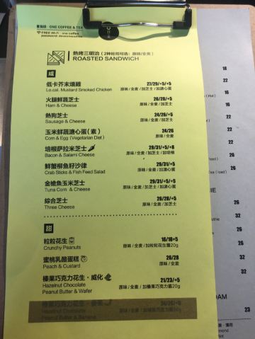 鴛鴦咖啡,百利甜拿铁咖啡,果味氣泡咖啡,榛果巧克力,榛果奶霜,草莓跳跳糖冰沙,榛果巧克力花生威化,春日櫻花拿鐵,综合芝士热烤三明治,火腿鲜蔬芝士热烤三明治,蜜桃乳酪蛋糕,低卡芥末熏鸡热烤三明治,蟹柳鱼籽沙律热烤三明治,薄荷拿鐵咖啡,玉米鲜蔬溏心蛋热烤三明治,金槍魚玉米芝士,热狗芝士热烤三明治,培根萨拉米芝士热烤三明治,冰拿铁,粒粒花生,柠檬冰美式