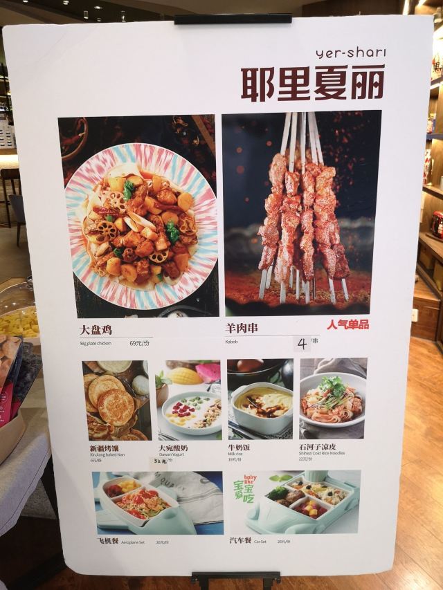 牛奶饭,馕坑烤羊排,薄饼羊肉卷,新疆烤馕,火焰山烤肉,新疆拌面,风味炒馕,柯斯佳虹鳟鱼,牧民烤羊腿,丁丁炒面,开胃羊杂汤,大盘鸡,羊肉串,娜帕里勇,新疆奶茶,红柳羊肉串,石河子凉皮,大宛酸奶,羊肉手抓饭,烤包子,炭烤羊排