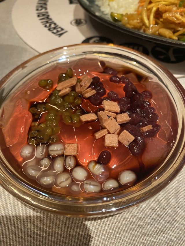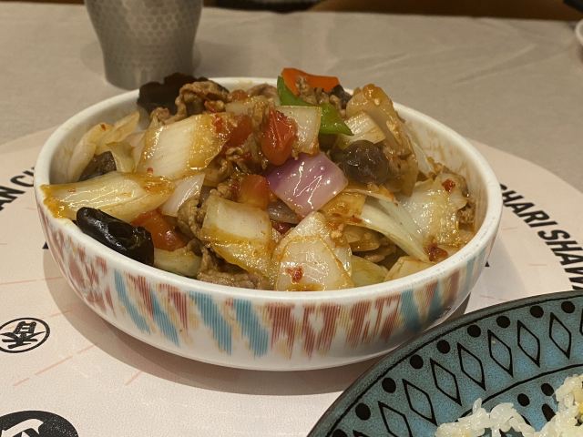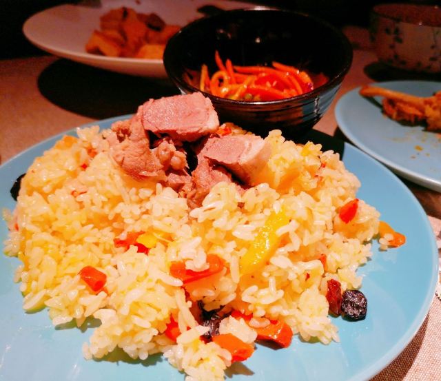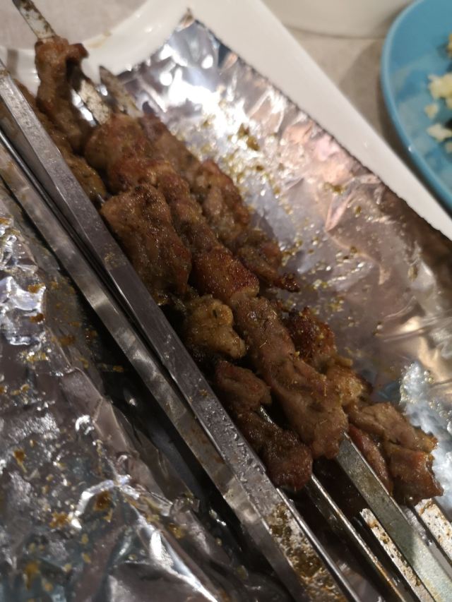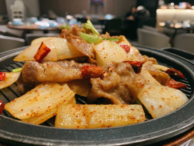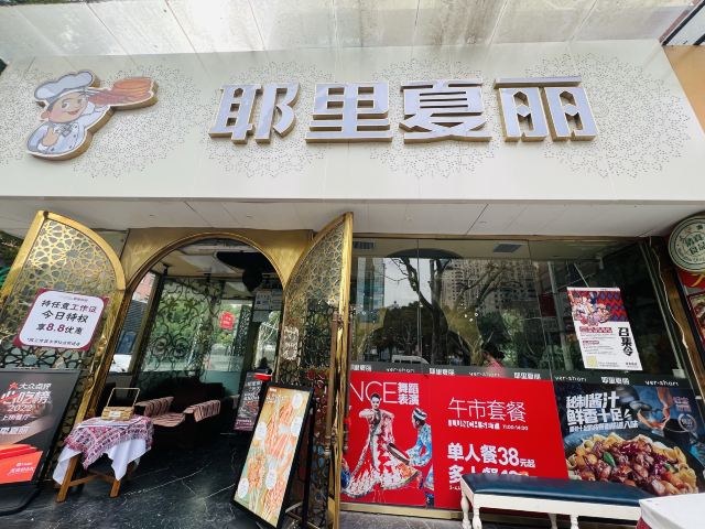 蓓家温暖宅在家翻翻手机里的照片,看到了大块吃肉的照片,那今天就写写那次小侄女外婆的生日宴吧。 环境:周末,跟家人去长宁来福士的耶里夏丽聚餐,门口都是等位的食客,餐厅外面展示架上都是新疆各种特产还有免费茶水和小食。我们因为提前预订顺利进入餐厅,餐厅风格和其他店不一样,不是新疆特色而是比较现代的北欧风格。 我们人多,坐中间长桌,刚点餐完毕,一阵欢快的音乐声,表演开始了。美丽的舞者如精灵般跳起肚皮舞,马上吸引了食客们的目光,有舞者表演一直是耶里夏丽餐厅的亮点,虽然没有专门的舞台但舞者会环绕整个餐厅表演,让用餐的每一位顾客都能看到。 服务:餐厅服务生非常忙碌,下单后会把美食分送到每个餐桌上,顾客有需求也会及时解决,整体服务还不错。 |新疆奶茶^新疆奶茶味道浓郁,餐具也非常漂亮。 |大盘鸡^招牌必点菜,说是土鸡,我觉得鸡肉少了些,土豆也挺入味,宽面条滑爽。 |牧民烤羊排^必点菜,烤的嫩而多汁的羊排撒上孜然蘸上酱汁,直接抓在手上啃真是超美味。 |碳烤牛舌^感觉这个牛舌像日料的做法,不错。 |剁椒鱼羊鲜^这个菜第一次点,感觉就是剁椒鱼头加了些涮羊肉,味道一般。 |羊肉手抓饭^羊肉抓饭每次必点,甜甜的胡萝卜、羊肉块还有配菜爽口的胡萝卜丝,就是好这口香香的羊肉饭。 |火焰山烤肉^所谓火焰山羊肉串的钢签是特制火焰花纹,有重量感,上面的羊肉块肥瘦搭配,用锡纸包裹上桌保温,大块吃肉那份豪爽在这里找到了感觉。 |风味炒馕^香而脆的炒馕,每次必点,哪怕肚子吃饱了也能再吃一些。 |牛奶饭^香而甜的牛奶饭是小侄女的最爱,我吃了一勺味道挺好的。 |招牌烤鱼^是仓鳊鱼,烤鱼挺香的。 |鲜榨哈密瓜汁^真的好甜。 |娜帕里勇^这道甜品不吃就白来耶里夏丽了,如冰激凌般的口感,每次必点。 |哈密瓜单卖^饭后来一只单卖的哈密瓜上桌,又香又甜,甜到心里了。 个个特色新疆菜应接不暇,嘴里吃着眼里瞅着,这个好吃那个鲜美,可惜我的胃只有一个,真想再多几个储存一下,来耶里夏丽过生日还特有欢乐气氛,非常满意。