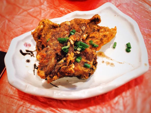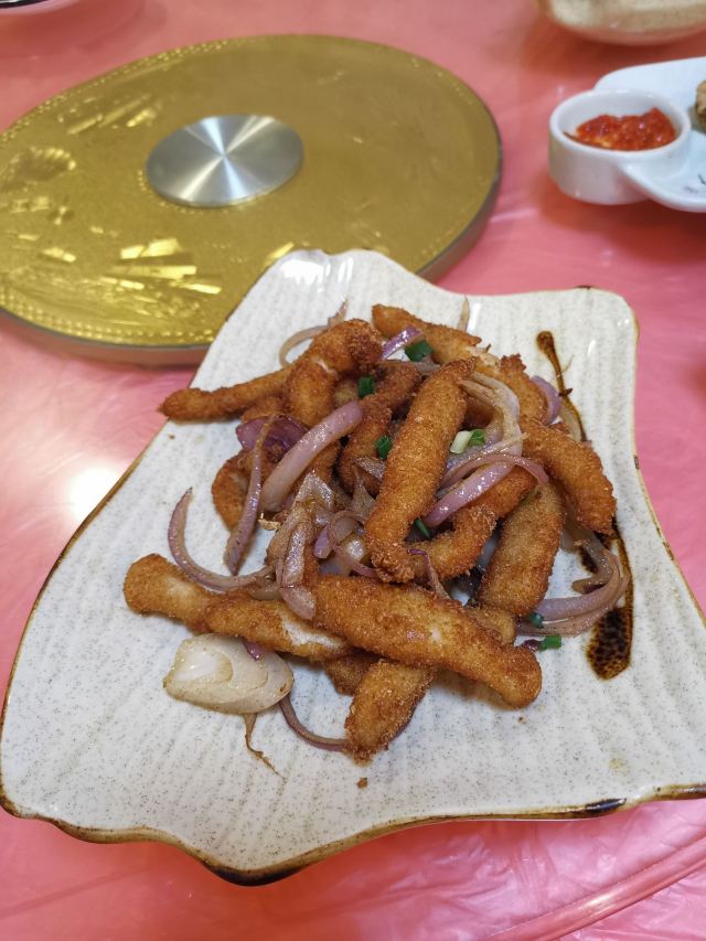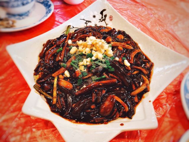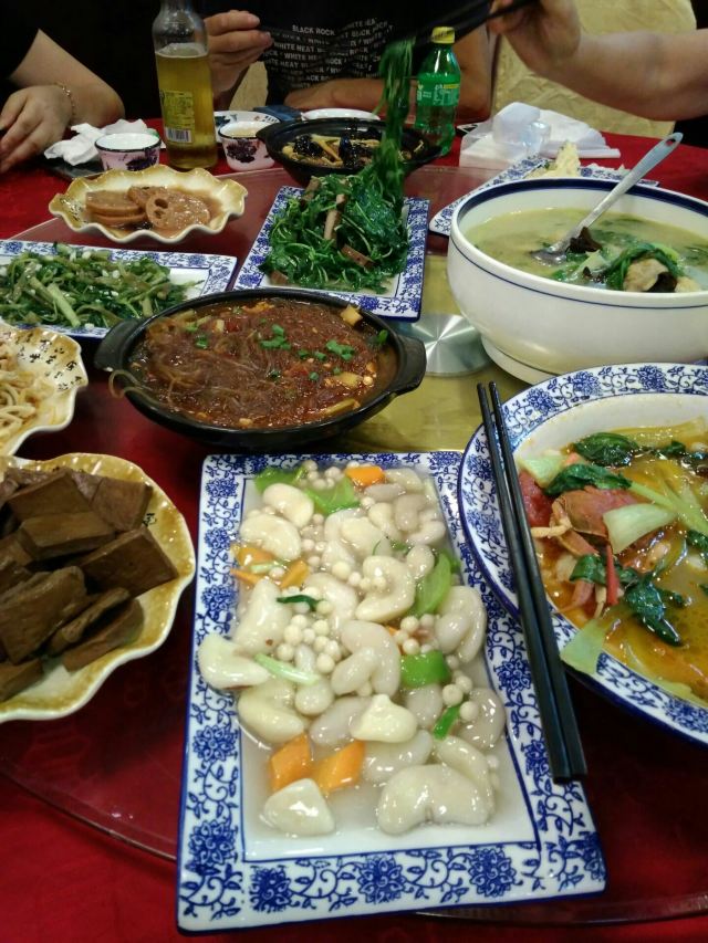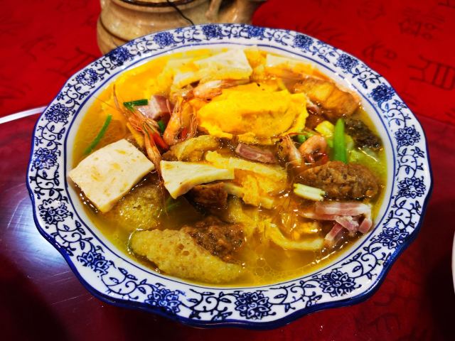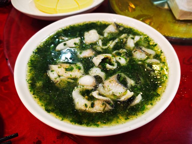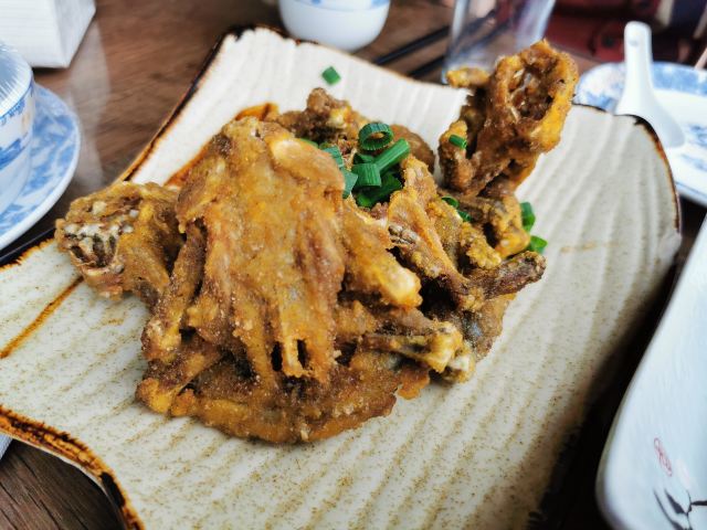 大老鼠格蕾丝古镇上的餐馆鳞次节比,看着都差不多,这家貌似评价最高,事实证明没来错。椒盐拉丝:虽然古镇上到处都有卖,但边走边吃毕竟不方便,干脆坐下来好好吃。一份有六个,老板会做生意,半份也肯卖。因为椒盐的关系,吃口还是比较咸,而且癞蛤蟆真的和牛蛙不能比,体型太纤瘦了,肉不多。响油鳝丝:在外面基本就没有吃到过不好吃的,这里的同样口感偏甜适合本地人的口味,如果有米饭的话,大概能把底下的勾芡汤汁一起干掉。香椿炒蛋:节前吃了次香椿,就觉得超级好吃,就再来一份,口感鲜嫩,咸淡正好。河鲜面疙瘩:小虾、贝壳还有小蟹,料很足,鲜得不得了,而且这个菜又能当汤又能当主食,简直完美。买单时用了团购券,人均才50左右,信价比太高了。至于为啥扣一星,因为生意太好,我们没坐到靠河的位子,太遗憾。