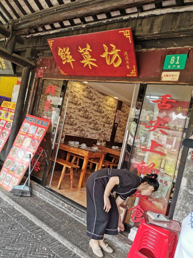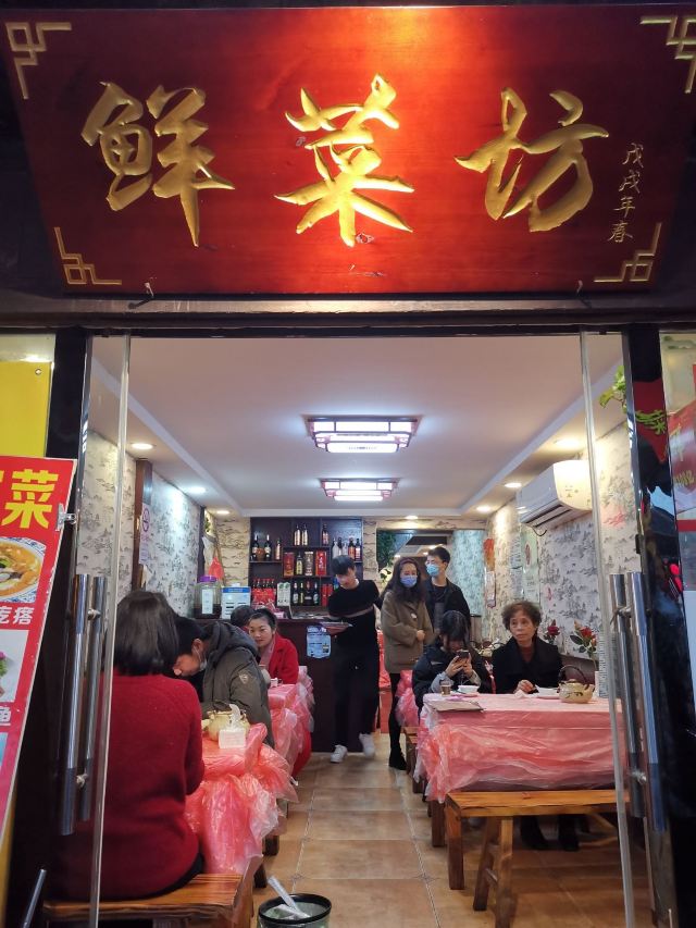 鲜菜坊从枫丽路进古镇,一个右转就到了。地理位置不错的。古镇周边停车比较难,但是这家店的老板会有办法把机动车停车位安排的妥妥的。所以如果你打算去用餐可以提早联系老板,老板会出来接你给你安排停车位。 重要事情说三遍,这家店有新用户和亮V客户专享的超级优惠套餐,东西味道美美,价格优惠哦!