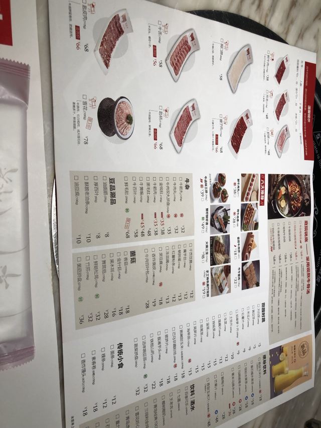 鲜牛肉丸,牛舌,火锅三宝,牛午餐肉,肥胼,酱料,香煎牛肉饼,特色牛腩鸳鸯锅,牛肉火锅,胸口捞,竹荪,吊龙,鲜牛肉,匙柄,牛骨原汤锅,蟹籽鲜虾滑,鲜牛杂鸳鸯锅,双丸拼盘,香炸腐皮,招牌牛腩鸳鸯锅,鲜毛肚