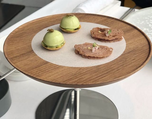 轻轻的一个蚊這是一家从入驻伊始就饱受争议的餐厅,一度被推到风头浪尖。听到的传闻是,今年因为主厨Eric因为疫情没办法过来,中国这边的主创团队开始用本土食材料理后,反而治好了水土不服。于是前天好久不见的高中同学点名要来拜访,就相约在这里。 上海中心,高耸入云打破了之前三足鼎立的格局,六十八层只有两个餐厅,云上钱屋和Lameloise. 这两家打定主意在魔都争抢高端日料以及法餐交椅的计划,似乎都相继失败。后者入驻一年后悄然降价,倒是没了往日的心高气傲。 订位子时接电话的工作人员贴心的询问相关的忌口,以及座位偏好和着装要求。我顺口问了一句,可以自己带酒吗? “可以的,但是可能需要您在我们酒单上买一瓶相同品级的酒,以减免开瓶费。” 闻所未闻,表示我们的酒量可能喝不完两瓶酒后,经过协调工作人员又改口道: “我们侍酒师会根据您带的酒品质,收取800-2000元不等的开瓶费。” “嗯,谢谢。” 开瓶费收到800元有对岸的Bombana当先例也就作罢,Lameloise这直接把天花板用一己之力翻了个倍。又询问,能把你们酒单发来看看吗,被告知我们的酒单是保密的,不能泄漏。 隐隐有着不快,倒不是针对独此一家,而是上海整体的餐饮似乎都没能建立一个完整的信息体系,不同的菜单,酒单都只能从某点评软件的返图里窥见一二,这对于餐厅来说是一个极不利的习惯。如果把所有的话语权都交由市场,只能从众说纷纭且参差不齐的评论里去了解一个餐厅,那又从何谈起独立精神? 入座后在等朋友期间,服务员贴心的送来招牌特色之一的蜗牛味爆米花,然后递上菜单。四道式与五道式的菜单后是A la Carte,一个小细节是可以一桌选不同的菜单,而且同价位的菜品也可以随意调动。 当晚刷完了两套Tasting menu,基本上囊括了整张菜单,这里就挑印象深的来写。