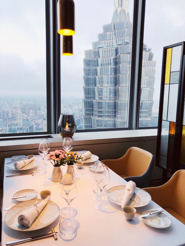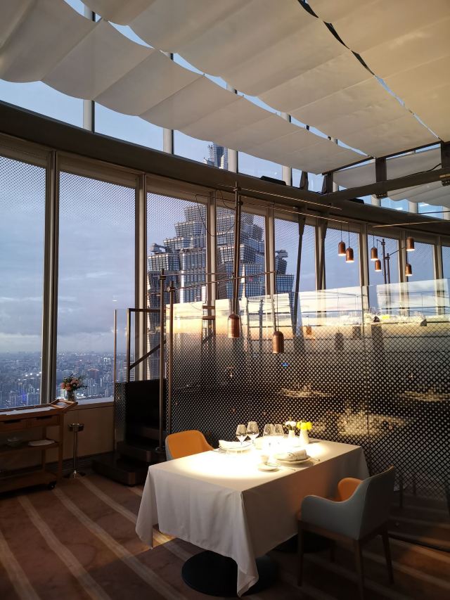 D了个Y位于上海中心大厦68层的莱美露滋 作为上海知名的法式餐厅 米其林 美食林的二钻餐厅 提前预约是必须的 想要walk in真心不是太容易 不过餐厅整体质素颇高 非常值得称道 值得专程到访 在这样的云端餐厅吃饭 你很难不关注到除了餐食以外的东西 比如景观 比如配合餐厅格调跟景观的餐厅布置 很难坚守在自己的餐桌前 而不挪步到其他位置来俯瞰一下不同角度陆家嘴的霓虹 而陆家嘴的夜 也的确是你值得驻足观赏的 餐厅也是最大限度的为了满足客户需求 基本以景观位居多 而且空间分布的比较合理 桌与桌之间的空间距离也比较大 保持了很好的舒适度 整体风格简洁明快 没有强烈的冲突色块 没有过多的摆设装饰 金属吊灯跟玻璃的组合很好的匹配了大楼的外墙结构 有一种自带的高级感 加上那一抹微笑的夕阳 真的是很令人陶醉 比位置更重要的是内核硬实力 以三星米其林大厨Eric Pras为标杆 传承法国勃朗艮的优良基因 从装潢布置到餐具摆盘 细腻周到 食材新鲜 口味丰富而充满层次 惊喜连连 法餐是可以做的很漂亮的 所以首先要做的好看 餐前面包的种类要丰富 要有型 要有选择性 虽然通常我都不怎么吃 因为我觉得吃吃多了影响我吃正餐 不过对于胃口好的朋友来说 倒是可以各种味道都尝一下 这里的出品还是不错的 开胃小点不求惊艳 但是要开胃啊 鹌鹑蛋 红酒干葱奶油冷汤倒是不错的选择 前菜是鳌虾 芹菜根绿苹果 鱼子酱配法国芥末奶油 层次相当分明 好看也好吃 特质炖煮蜗牛搭配蔬菜拼盆 蒜味雪霸 章鱼配珍珠面与罗勒高汤 都是很好的尝试 临了 还有一个小惊喜 对喜欢芝士的朋友可谓是大彩蛋了 各种珍贵品种的芝士 大可以敞开了吃 TIPS 通常情况下 在吃完甜点之后 主厨会出来转一圈 了解一下食客对于当晚整个餐食的满意程度 如果想要合影 也是可以的 你们看到的很多高级餐厅的大厨合影就是这么来的 真不是牛X到谁谁谁都认识世界各地的主厨的 不要盲目崇拜 当然一份价钱一分货 餐费是还需收取服务费的 总体来说就是个人体验很棒的餐厅 非常喜欢