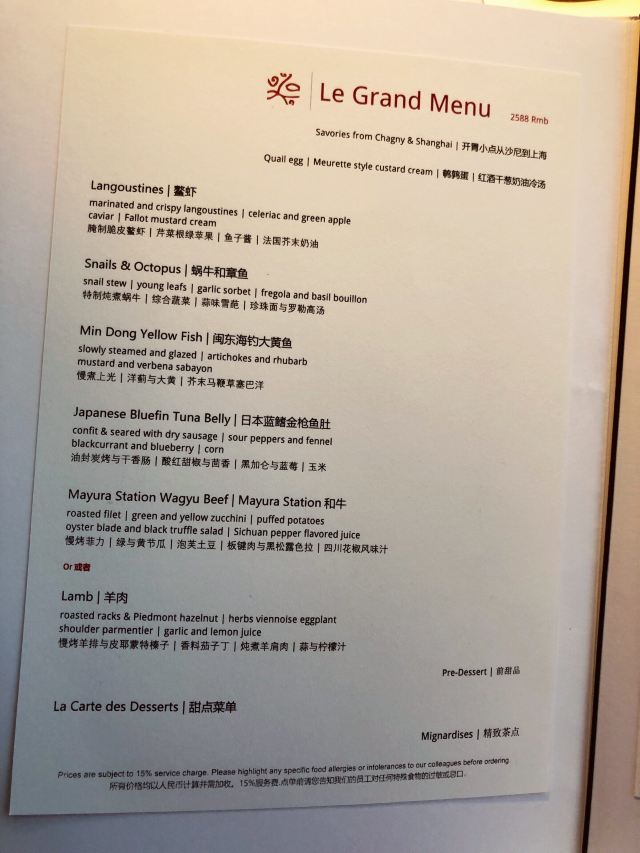 Maison Lameloise SHANGHAI位于上海中心大厦68层的莱美露滋 作为上海知名的法式餐厅 米其林 美食林的二钻餐厅 提前预约是必须的 想要walk in真心不是太容易 不过餐厅整体质素颇高 非常值得称道 值得专程到访 在这样的云端餐厅吃饭 你很难不关注到除了餐食以外的东西 比如景观 比如配合餐厅格调跟景观的餐厅布置 很难坚守在自己的餐桌前 而不挪步到其他位置来俯瞰一下不同角度陆家嘴的霓虹 而陆家嘴的夜 也的确是你值得驻足观赏的 餐厅也是最大限度的为了满足客户需求 基本以景观位居多 而且空间分布的比较合理 桌与桌之间的空间距离也比较大 保持了很好的舒适度 整体风格简洁明快 没有强烈的冲突色块 没有过多的摆设装饰 金属吊灯跟玻璃的组合很好的匹配了大楼的外墙结构 有一种自带的高级感 加上那一抹微笑的夕阳 真的是很令人陶醉 比位置更重要的是内核硬实力 以三星米其林大厨Eric Pras为标杆 传承法国勃朗艮的优良基因 从装潢布置到餐具摆盘 细腻周到 食材新鲜 口味丰富而充满层次 惊喜连连 法餐是可以做的很漂亮的 所以首先要做的好看 餐前面包的种类要丰富 要有型 要有选择性 虽然通常我都不怎么吃 因为我觉得吃吃多了影响我吃正餐 不过对于胃口好的朋友来说 倒是可以各种味道都尝一下 这里的出品还是不错的 开胃小点不求惊艳 但是要开胃啊 鹌鹑蛋 红酒干葱奶油冷汤倒是不错的选择 前菜是鳌虾 芹菜根绿苹果 鱼子酱配法国芥末奶油 层次相当分明 好看也好吃 特质炖煮蜗牛搭配蔬菜拼盆 蒜味雪霸 章鱼配珍珠面与罗勒高汤 都是很好的尝试 临了 还有一个小惊喜 对喜欢芝士的朋友可谓是大彩蛋了 各种珍贵品种的芝士 大可以敞开了吃 TIPS 通常情况下 在吃完甜点之后 主厨会出来转一圈 了解一下食客对于当晚整个餐食的满意程度 如果想要合影 也是可以的 你们看到的很多高级餐厅的大厨合影就是这么来的 真不是牛X到谁谁谁都认识世界各地的主厨的 不要盲目崇拜 当然一份价钱一分货 餐费是还需收取服务费的 总体来说就是个人体验很棒的餐厅 非常喜欢