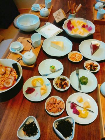 琳莺视界日系风格的茶馆,很隐世的感觉,日式庭院般鸟笼感的,流水,鸟儿,好雅致的感觉,还有日式榻榻米包间,很私密的味道,很适合约会、商务会务等。服务挺好,除了喝茶还可以品味到日式拉面。 喝了两款茶品:大红袍、桂花红茶,一套茶具,全自动煮茶的装置,大红袍口感正宗,茶的清香,可冲泡好多回,依然能品味到茶香。桂花红茶也很好喝,很适合女性的一款茶品。 梅花糕:做成梅花造型的糕点,好精致,里面的馅料全是玫瑰花香气,糕点很酥很细腻,口感很好很香。 干果吃起来很香,好多花生米。 小果盘里水果搭配挺好,摆盘挺好。 日式拉面:很大一碗,正宗日式豚骨拉面,面条足量,吃得挺饱,汤底很鲜。