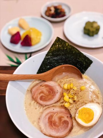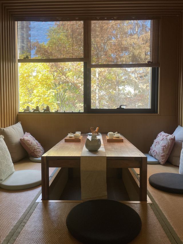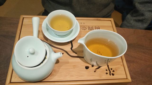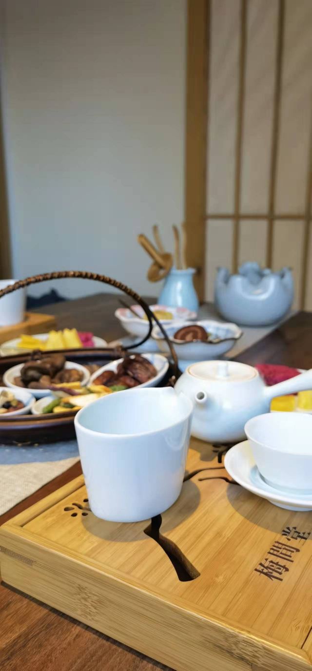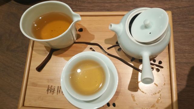 Meijiantang日系风格的茶馆,很隐世的感觉,日式庭院般鸟笼感的,流水,鸟儿,好雅致的感觉,还有日式榻榻米包间,很私密的味道,很适合约会、商务会务等。服务挺好,除了喝茶还可以品味到日式拉面。 喝了两款茶品:大红袍、桂花红茶,一套茶具,全自动煮茶的装置,大红袍口感正宗,茶的清香,可冲泡好多回,依然能品味到茶香。桂花红茶也很好喝,很适合女性的一款茶品。 梅花糕:做成梅花造型的糕点,好精致,里面的馅料全是玫瑰花香气,糕点很酥很细腻,口感很好很香。 干果吃起来很香,好多花生米。 小果盘里水果搭配挺好,摆盘挺好。 日式拉面:很大一碗,正宗日式豚骨拉面,面条足量,吃得挺饱,汤底很鲜。