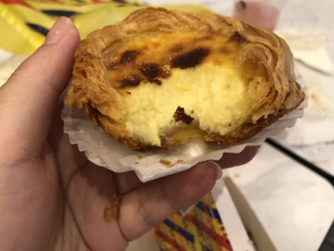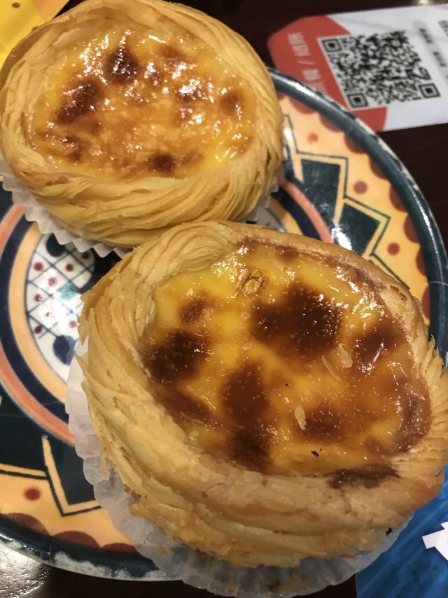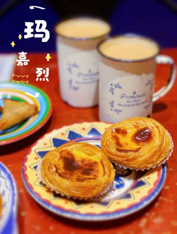 寂寞的西瓜每年至少打卡1次+的Macau,在今年的特殊状况之下,至今没有能够成行,好叭,那就来「玛嘉烈澳门葡式冰室(万象城店)」,假装在Macau囖😜😜 🏠门店环境: 小巷子里只卖蛋挞和茶饮的玛嘉烈,来到wuli大魔都,俨然变成了包罗万象的茶餐厅,环境自然也比澳门的老旧小铺子好太多惹~ 💰性价比: 人均四五十左右,还是相当划算哒。既可以简简单单外带几枚蛋挞,也可以叫上满满当当一桌子的主食、小吃和甜点,整体性价比在线。 🥢口味推荐: 「招牌葡国蛋挞」 如果说澳门的玛嘉烈蛋挞,要比安德鲁更加酥松,那么,魔都的这枚出品,简直又酥松了好几级。酥皮层没有那么紧实,就有更多的空气感,个头似乎也显得大啦。 只可惜,蛋奶气息不足,味道勉强算及格叭。比起原版,到底还是差了一些些。。。 「咖喱三角」 咖哩饺的出品还不错,只不过Macau的咖喱几乎都是重口味,这里显然改良成了小清新。 总体而言,是一间路过可以试试的店铺,慕名打卡之类,意义不大。
