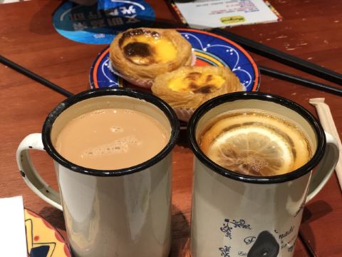 小苹果花苑这家店在万象城的地下一层,每次路过的时候,只要是饭点,这里经常会排长队。 奶茶、葡式蛋挞、葡式鸡翅、车仔面...味道都是和澳门吃的一样,非常正宗,十分美味哦。特别是这里的蛋挞,每日新鲜出炉,口味香浓,十分细滑,浓郁的蛋香在口中徘徊,外层松化,入口即化,每日还会限量供应哦,你去晚了肯定就买不到了! 这里的环境和装修要比澳门的店要好了很多,这里有堂吃,也有外卖,整个店的装修风格十分的复古,一面墙上把澳门的景点都列了出来,一下子就能吸引住食客们的眼球。 个人认为这里的服务员也都是训练有素的,这里你可以扫码点单,还有服务员会帮你递上一次性的手套,让你感觉很是满意和贴心。