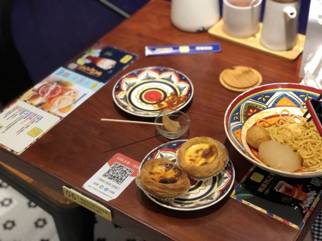 放羊的芥末在上海竟然有这么一家特别的葡式茶餐厅,看装修我还以为是港式装修的餐厅,进入以后才发现是葡式冰室,别有一番味道,坐在里面点菜感受到了老旧港式的味道,首先让我联想到的是九龙冰室🤭。 📍地址:吴中路1599号LG126-127号,万象城内 🚄交通:坐地铁可直达万象城 👨👦👦人均:65元/位 🗺环境:如图,绝对的港风,餐厅内到处都能让你拍出靓照,每一个点位都可以让你成为最靓的仔。 👩🏻⚕️服务:店里都是小哥哥和小姐姐,培训很到位,虽然带着口罩也能感受得到她们灿烂的笑容,一个瘦高的小姐姐,看我饮料洒啦还主动帮我换了位子。 🌮菜品口味:这次点的菜都没踩坑,每个菜都好吃。 1️⃣葡式蛋挞:香酥可口,蛋的部份恰当好,甜而不腻。 2️⃣熔岩爆珠漏奶华:甜度刚刚好,溱泡在牛奶里,用上刀叉轻轻的切下一小块,放入口中,奶香与巧克的味道回味无穷; 3️⃣经典牛杂净萝卜:牛杂入口及烂,绝对不会扎到你的牙缝,萝卜泡着牛杂汤融入了牛杂的味道加上萝卜的甜味,那口味就只能说是刚刚好,没有一点过; 4️⃣冬阴功海鲜面:冬阴功口味有一些偏辣,吃不了辣的朋友可换别的口味,做为广西人的我,觉得正好,连汤都喝完了🌝 IN:微信点菜自带动图效果,看着超有食欲的,导致我一个人硬放了这么多菜下胃!超级撑!大家慎点!