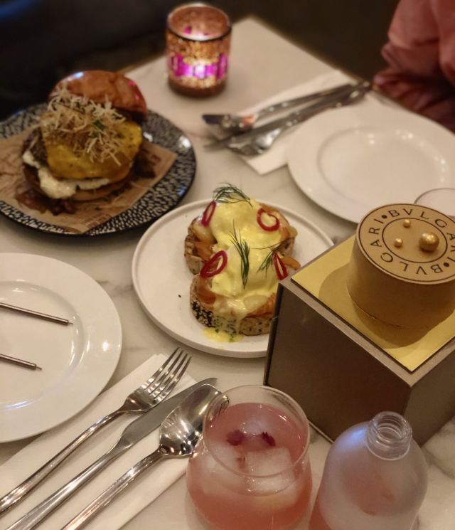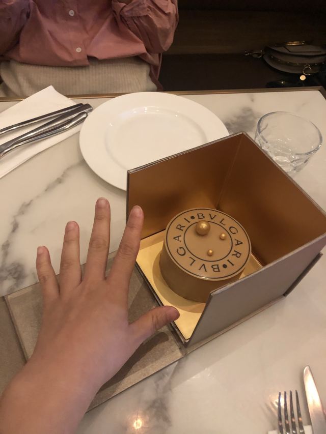 不轻易Marryi正式用餐的服务特别棒。给我们预留了窗边最好的座位,还送了好吃的巧克力蛋糕分享套餐没人1200元,还选了每人1940元的品鉴七道式套餐,米其林三星厨师顶的,蔬菜和鱼肉居多,肉偏少,这点不是很满意。 餐前面包一共三种,配的是宝格丽酒店自制橄榄油;开胃汤里放了一点香槟,用蔬菜熬制而成的,口感很特别,喝了一点后还有种微醺的感觉;稠鱼配鱼子酱,鱼肉很嫩,有生鱼片口感但是是烧熟的;牛奶菠菜酸酸的,好像是芦笋和菠菜,对于食肉者来说太素了点;小牛肉配金枪鱼鱼酱这道菜相对而言是最好吃的,也是最受单点食客喜爱的菜之一;鱼子酱芝士饺子淡淡的芝士味,饺子馅儿很实;黑松露羊排和地中海野生多宝鱼,羊排和多宝鱼都很嫩,不过没有留下太大印象;卡仕达奶油甜甜圈 外观像咸泡芙一样,竟然是甜甜圈;巧克力泡芙 巧克力酱味道浓郁,全吃了,泡芙不喜欢;腌草莓 酸酸的,可能用送的酸果汁漱口后再吃会比较好。