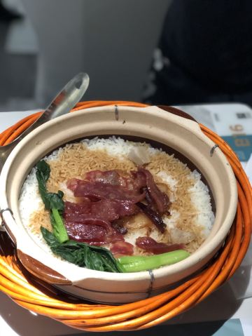 蛋花食游记冷色调的原味椰子鸡火锅,魔都超人打卡地 说到椰子鸡火锅,不得不提23度不太冷,餐厅中央的巨大的带象征着的莫比乌斯环,怪不得王思聪等明星一年要来好几次,23度是海南平均气温的代表,象征着人体最舒服的问题,在如此环境下的鸡肉椰汁汤,也是好吃得不行。 原味椰子鸡锅,用三颗椰汁为底,汤头清甜好喝,新鲜看得见呢。还有椰肉可以食用,选自海南文昌鸡肉,久煮不老,蘸取店里的独家秘制酱料,实在是太美妙了。 荔浦芋头作为涮菜,也是粉糯无比越煮越好吃。 广式腊味煲仔饭,略带焦香的香肠和米饭一起,底部锅巴焦香诱人,腊肠口感很棒。 最后的网红椰子冻也是特色,清甜可人,椰肉嫩滑,简直是完美地收尾。