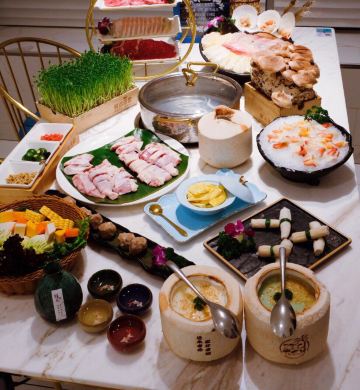空运海南文昌鸡,海南椰子饭,澳洲雪花牛肉,综合肉类拼盘,抹茶双层椰子冻,珍珠马蹄,牛舌,鲷鱼片,活体豆苗,深海拼盘,桃花酿,原味椰子锅,广式腊味煲仔饭,原味椰子冻,海南文昌鸡,竹笙虾滑,特色酱料,竹笙椰子鸡,蔬菜拼盘,雪花牛肉,菠萝蜜霸气椰子鸡