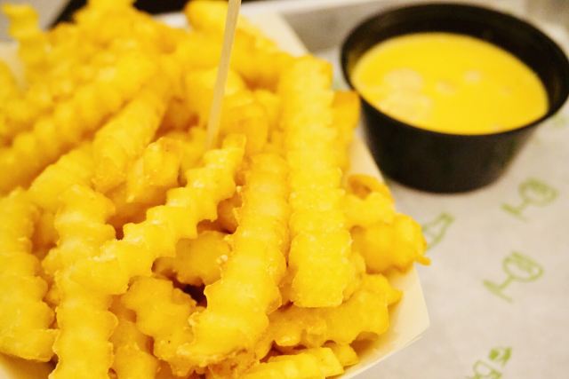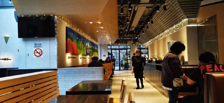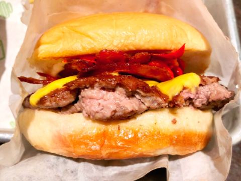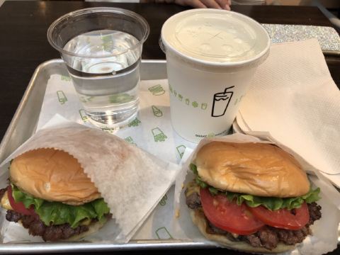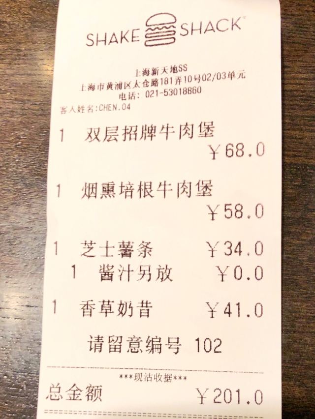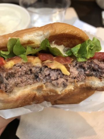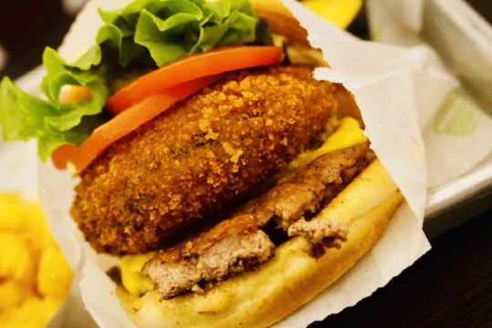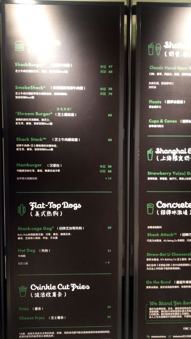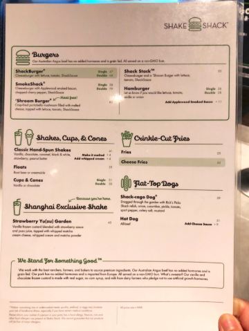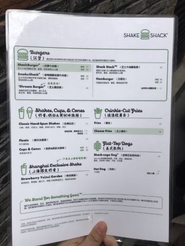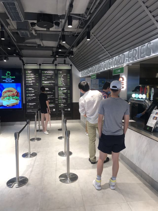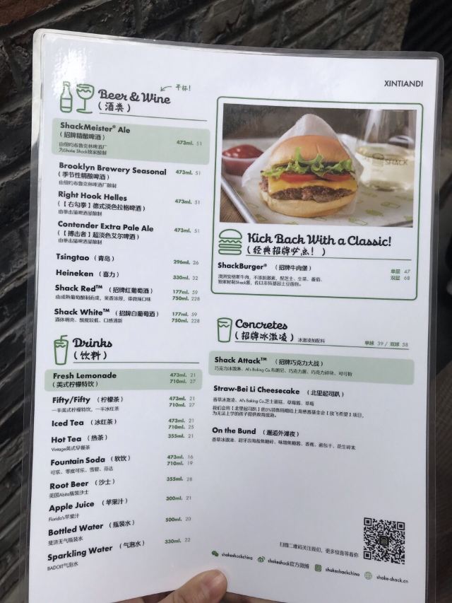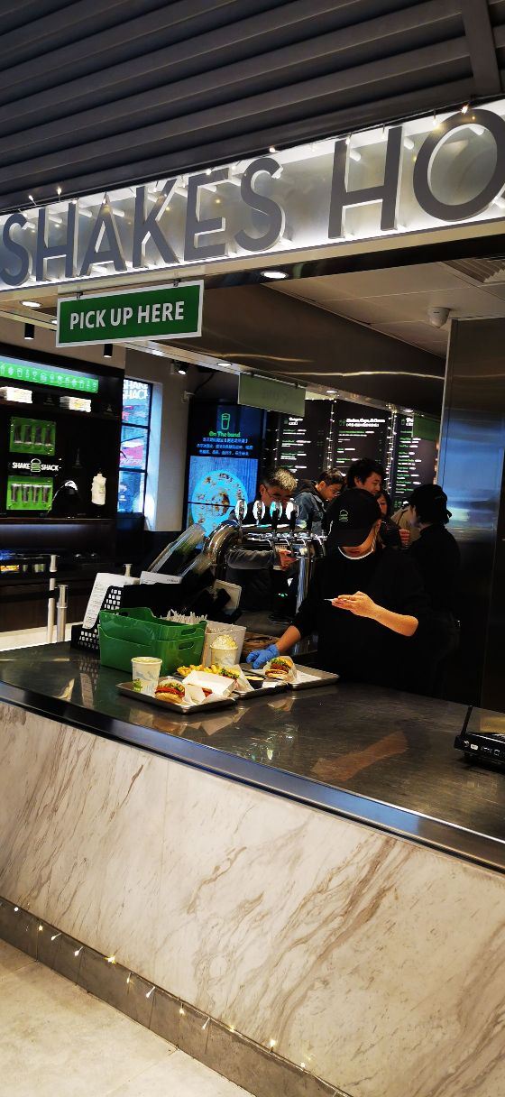 泡泡龙他爸以前这个位置是家匹萨店,关了之后过了一阵就变成了现在的Shake Shack。新天地的那些餐厅大部分都是在国外有些名气再进国内淘金的,不过在我眼里网红算不得一个褒义词,很一般般甚至很差的所谓网红店碰到太多了,餐厅关键是口味要做得好。每次经过看到Shake Shack人山人海,生意比周围的餐厅都好多了,也没时间进去看看。一直到去年年底,才找到机会去尝试尝试,要去的早,中午最好11点开门就到,不到11点也排队等开门过一次。不过这个时间段来就算排队也是很快的,服务生给菜单排队时就可以看好想好吃什么,点餐的窗口也有好几个,还是挺顺畅的。取餐要自己去,人多点的多的话服务生也会主动帮你送来