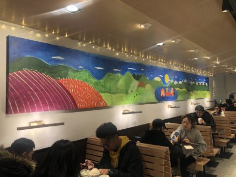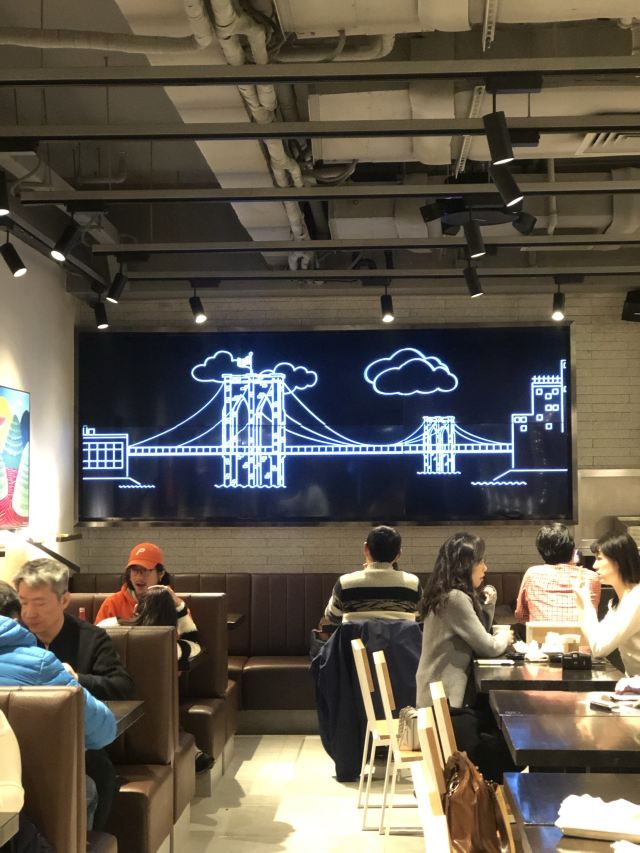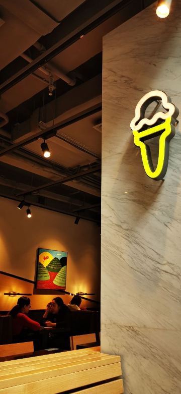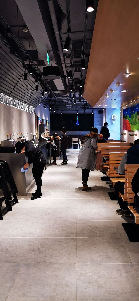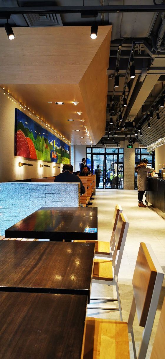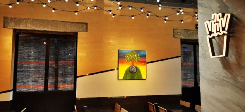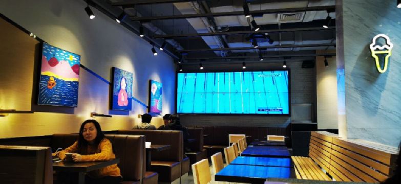 泡泡龙他爸整个餐厅装饰简洁,色调明快,室内座位不算很多,所以即使冬天室外的座位也挺吃香,有暖气给你打着暖风,就是据说暖气太足了点,坐在边上像烤炉吃不消。吃的东西还是比较好选的,汉堡、三明治、薯条、甜饮料。来了三次,尝了不同的品种,薯条是芝士的味道好,招牌汉堡包非常出色,比芝士汉堡包口感要好,双层汉堡就量太大了些。有这家餐厅特有的饮料品种粉墨豫园,据说其他国家分店是没有的,是杯量挺多有点过甜的奶昔,口感还不错。价格也算适当,性价比还可以,关键是汉堡做的很出色,好吃是最要紧的,就是不能吃太多,热量太多,甜品也会觉得发腻。发票要自行在小票上扫码,拿电子发票。店内还有纪念品购买,看得出花了不少心思