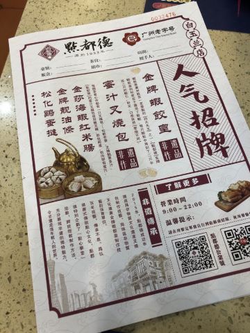 Diandoude (baiyulan)点都得算是粤式点心中比较正宗的了,很久没吃了,就在五一佳节带着家人一起去,很惊喜的是提前电话竟然能够订到包房。 进店引位的时候,服务员都会微笑招手相迎,还蛮温馨的坐下以后扫码把招牌都点了一遍,口味还是一如既往的好。