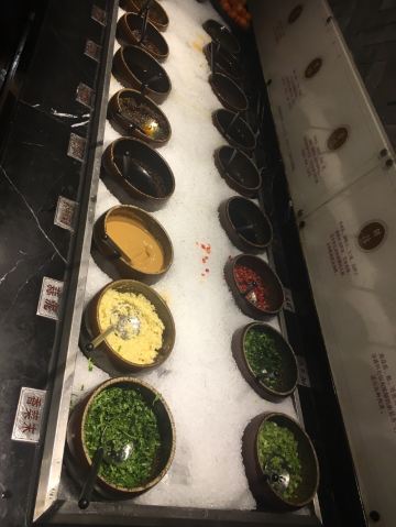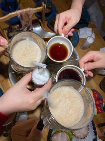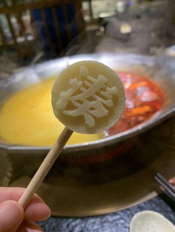 国庆结束就预约了,包房要求5点半到,下午3点多的时候给我打电话,我说我会来的,结果小伙伴到了店里,竟然说取消了。说我是说不来了,经过确认总算不是我的问题,电话客服也实在是不太靠谱[尴尬][尴尬][尴尬] 包房是没了,改成了外面,因祸得福的吃饭不用限定2个半小时了。还好最后问题解决,店里的服务还算不错,圆满解决问题。 「花胶锅和台式麻辣锅双拼」比较推荐这个双拼锅底,龙虾汤口感没有鸡汤的口感棒,花胶鸡汤可以涮东西前先喝个汤。 「鸭血」无限畅吃的鸭血,想吃多少拿多少,无限免费续加,凑凑是鸭血控的福音,可以直接放碗里,也可以放锅里煮煮。 「海鲜棒棒糖」他们家的招牌菜,很可爱的名字,每个海鲜滑做成了棒棒糖,给小朋友吃很喜欢。 「凉拌鱼皮」开胃菜,和哈密瓜,小番茄一起都是算在每位的餐位费里的,东西又新鲜,所以放开肚子吃。 「冰沙」赠送的每人一杯,像可尔必思冰沙,酸酸甜甜小朋友也特别的喜欢。 「风味鸭肠」「毛肚」适合放在辣锅里涮,不然就没有成都火锅的那种感觉了。 「活豆苗」造型比口味更来感觉,直接割下来让人感觉更加新鲜。 「大红袍奶茶」造型别致,单独的一个壶,单独的一个杯子,但是,真的,喝了又一天没睡着。 归纳下来,他们家除了接线生把我的订位取消了,其他当场的服务都很好。无限鸭血,各种网红奶茶,小资的火锅环境,怪不得生意太好。