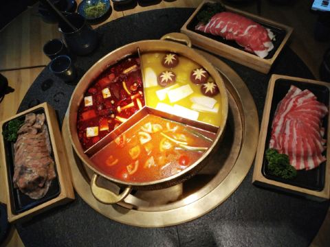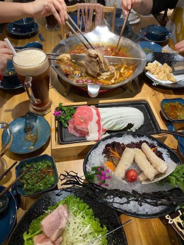 花胶锅,鸭血,血豆腐,海鲜棒棒糖,活豆苗,肥牛,鸭肠,芝士鱼豆腐,冰淇淋,雪花牛肉粒,热铁观音珍珠奶茶,鲜毛肚,雪花牛小排,巧克力冰激凌,大红袍珍珠奶茶,鸭血豆腐,台式麻辣锅,红颜花胶鸡锅,湊湊肥牛,冰沙,飞鱼籽墨鱼滑,凉拌鱼皮,风味鸭肠,毛肚