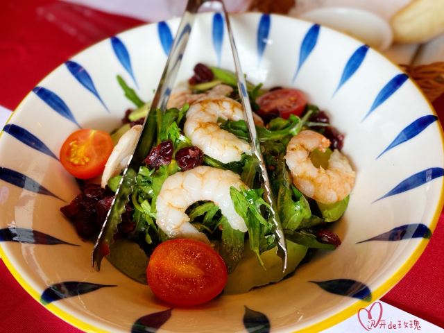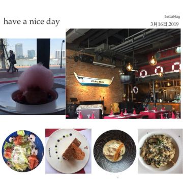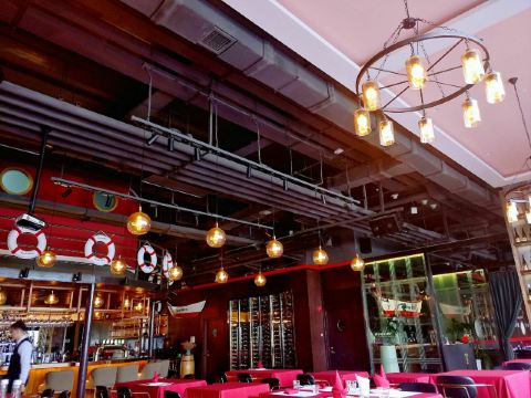 DC75556法国连锁海鲜餐厅,开在陆家嘴滨江大道靠近其昌栈渡口,位置稍偏,中午人不多,选择窗边的位置可以看看江景。本来主菜想点牛肉的,一问居然不供应了,有点小失望。 餐前面包是法式全麦面包,搭配混着蟹肉棒颗粒的黄油。 前菜【乡村肉酱配酸黄瓜,自制面包】,上前菜的时候我们已经把餐前面包吃完了,为了吃掉那份肉酱只好让服务员再上了一份面包,肉酱有点干,酸黄瓜开胃,里面还有些菌菇,旁边一小份油醋汁的沙拉,感觉醋放的有点多。 【海鲜凯撒沙拉配虾,蟹和熏鲑鱼】相比之下,这个沙拉就好吃多啦,虾和烟熏三文鱼品质不错,蟹是蟹肉棒做的。 主菜 【三文鱼排配青豆泥,薄饼和白葡萄酒奶油酱】三文鱼煎的皮脆肉嫩,搭配的酱汁味道很赞,薄饼其实就是一片培根。 【黑松露蘑菇烩饭】一上桌就香气扑鼻,米饭也软硬适中。 甜品【香草奶冻配混合果酱】盖着粉粉的棉花糖,奶冻本身不是很甜混着酸酸甜甜的草莓蓝莓酱,下面还有一层酥皮挞,口感丰富有层次 【巧克力慕斯】巧克力很浓郁,相较奶冻略显普通,也比较甜 饮品【乌龙茶】热茶,无限续杯,正好可以解解腻