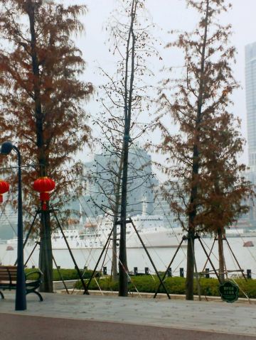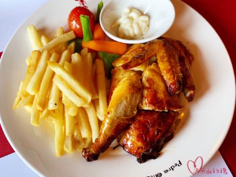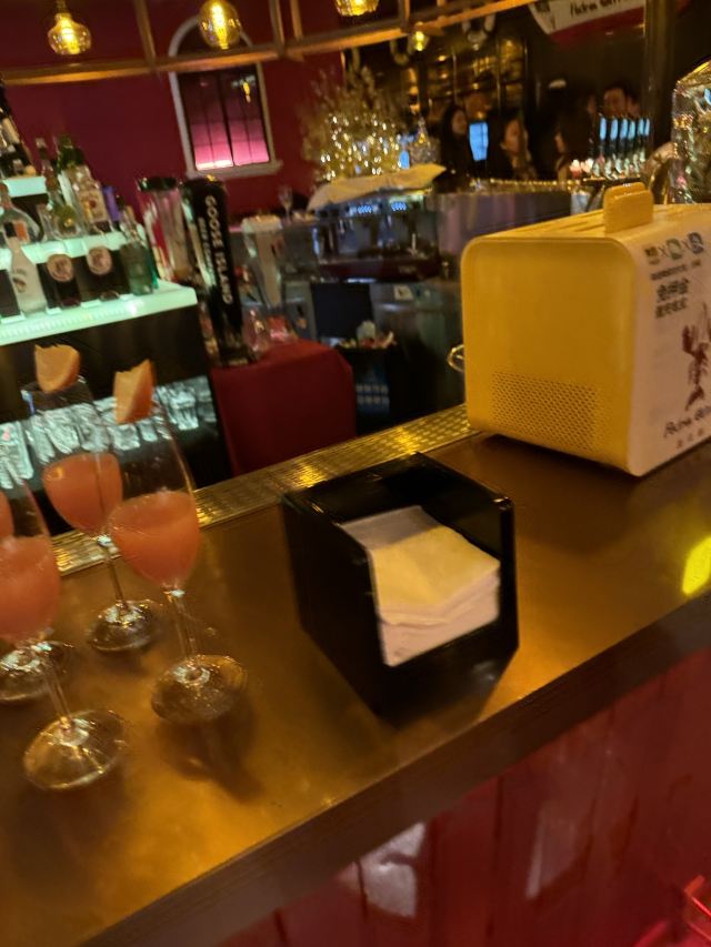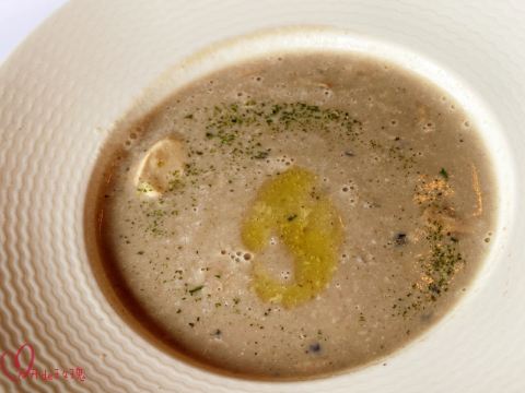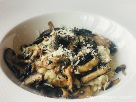 迟开de玫瑰#松露菌菇汤#菌菇汤要好喝不容易,因为菌菇加上松露那种“灵异”的香味每个人的喜好程度不同,需要咸味压一下,压得恰到好处才能好喝。这家汤做得非常好喝,浓郁鲜美,香味激发得淋漓尽致,但又不招人厌。 #大虾牛油果芝麻菜沙拉#口感清爽的沙拉,已经淋上了调味酱汁,类似千岛酱,酸酸甜甜。酱汁有些多且粘稠,芝麻菜之间因此都黏在了一起,吃起来厚厚的一堆稍微有些腻。如果另配酱汁,让客人自己按需放,会好很多。 #扒西冷牛排配蔬菜热鹅肝酱汁#牛排要了7分熟,一边烤得比较瘦,中间的稍微带生,另一边是肥肉,一口下去,油脂溢出,特别特别香。淋的酱汁没有吃出来鹅肝味,但很好吃就是了。 #秘制烤鸡配咸味薯条#这家薯条是我吃过最好吃的薯条,在减肥的情况下也忍不住吃了数十根。它家特别在薯条本身是调过味,很是鲜美,和菌菇汤一样,咸得恰到好处,把鲜味提到了最高点。烤鸡也很好吃,又香又脆趁热吃。这样半只鸡上来,分量足足的,2个人吃不完。 #贻贝菌菇意面配黄油葡萄酒汁#烤鸡吃不完,面条就更吃不下了。尝了一口贻贝和面条,挺好吃的,但对我已经有点食不知味了。 #焦糖布丁#甜品是我的最爱,胃里总有一个空间能留给它。布丁非常好吃,香浓柔滑,像含了一大口奶油在嘴里,但不是很腻,满足。 环境:开工第一天下雨,客人比较少,坐到了靠窗的位置,就是江景位了。一边吃饭一边观赏两岸滨江,绝对超值。整个餐厅布置非常地西化,酒吧台设计尤其漂亮,夜晚来的话肯定是更美的。 服务:服务非常好,有好几个服务员都是上海人,很有腔调。不是流程化地帮你换餐盘,而是会贴心地照顾到客人的需要,比如出门上厕所提醒穿外套,离开的时候送到门口,很久没遇到这么贴心的服务了。