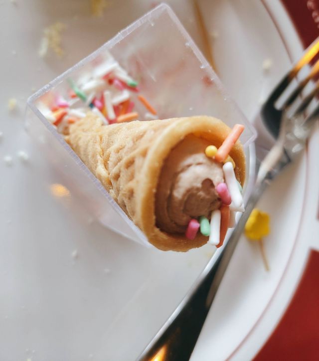 琳莺视界餐厅坐落于船厂1862时尚艺术中心,环境舒雅,一旁有放置红酒瓶的柜子,餐厅渗透着海洋风的元素,挺有格调,餐厅的空间挺宽敞,就像一个大的酒吧西餐厅,无打扰式服务。透过大玻璃窗可以欣赏滨江的风景,可以看到黄浦江上船只来往穿梭、对岸北外滩的一幢幢楼宇,景观无限好。 餐厅主打法式料理的西餐,我们这次去拔草的是双人下午茶,甜点和咸点皆有之,是放在三层鸟笼架子上的,还选了饮品英式红茶一壶。茶器表面是英式的花纹,造型很原汁原味。英式红茶入口很温和,没有过多的刺激胃,温度适宜,还带着一股特有的清香,和甜点咸点搭配起来再合适不过了,茶水量多。甜点咸点口感都很正宗,造型都很小巧精致。咸点中最喜欢自制烟熏三文鱼卷配三文鱼籽,很大的三文鱼卷和三文鱼籽,风味很好。甜点中芝士蛋糕、歌剧院蛋糕还有法式马卡龙风味挺好的。芝士蛋糕口感超级浓郁,底下的手指饼干很脆很美味。歌剧院蛋糕里的巧克力味和奶香味都很浓郁。法式马卡龙的造型很好看,粉嫩的和白色的各一,制作很特别,里面有蛋糕还有浓郁花生酱,口感好棒,给我满满的惊喜。