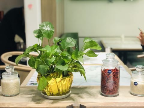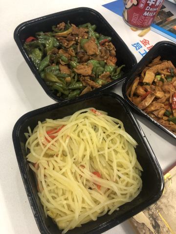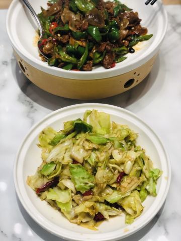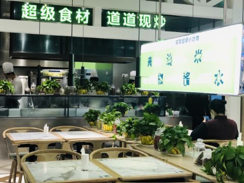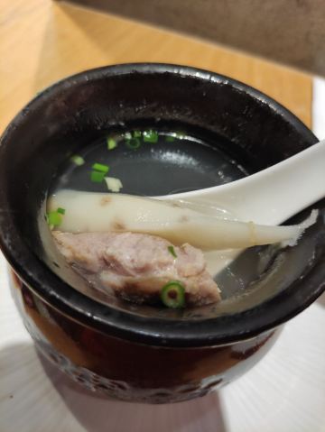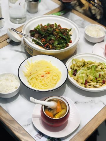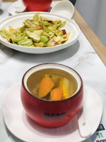 商场B1很大,这家店就在盒马的旁边,绕了一大圈猜发现,小哥态度很好,进店就送上暖暖的柠檬水,收拾餐桌也很勤快; 上菜速度有点慢,好像每桌都是这个情况,开放式的厨房,还是让人很放心的; 小炒肉每桌必点,量挺大的,一开始有点辣,吃到后面也就习惯了,特别下饭的菜; 玉米龙骨汤真的很养生,鲜香四溢,不是添加味精的那种,健康️营养; 酸辣土豆丝,真的挺辣的,有点被呛到了,手撕包菜很入味; 吃好去盒马采购一番,坐等除夕看春晚